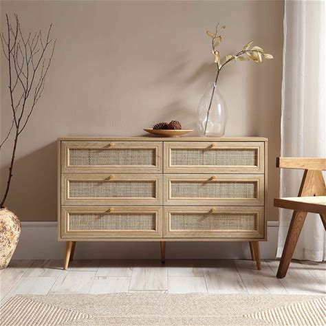 Frances Woven Rattan 6 Drawer Dresser, Natural - Daals - Chest Of Drawers