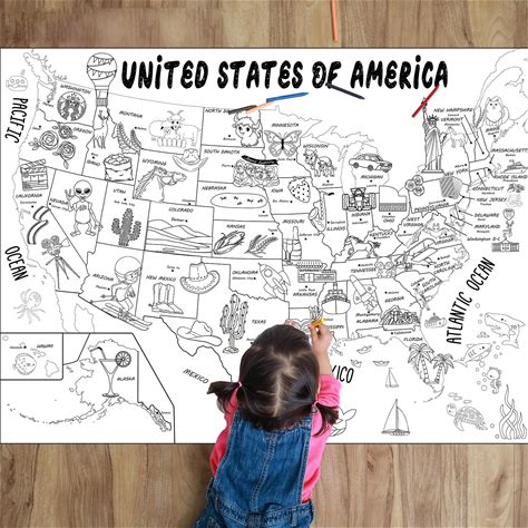 Tiny Expressions - Giant USA Coloring Map For Kids - Rolled, No Creases 72" X 30" Large - United States Coloring Poster, Ideal For Classroom Or
